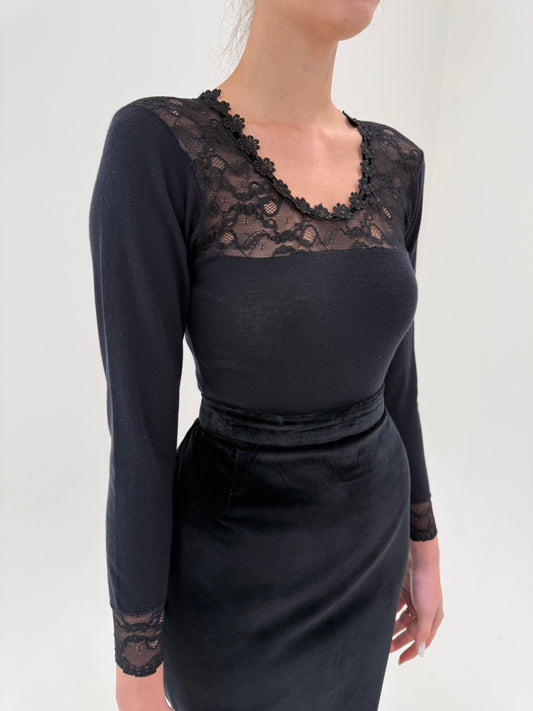 Body din lana extrafina subțire de la zi la seară și dantelă
