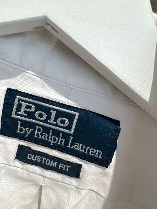 Cămașa albă Ralph Lauren din poplin gros de bumbac în croi actual