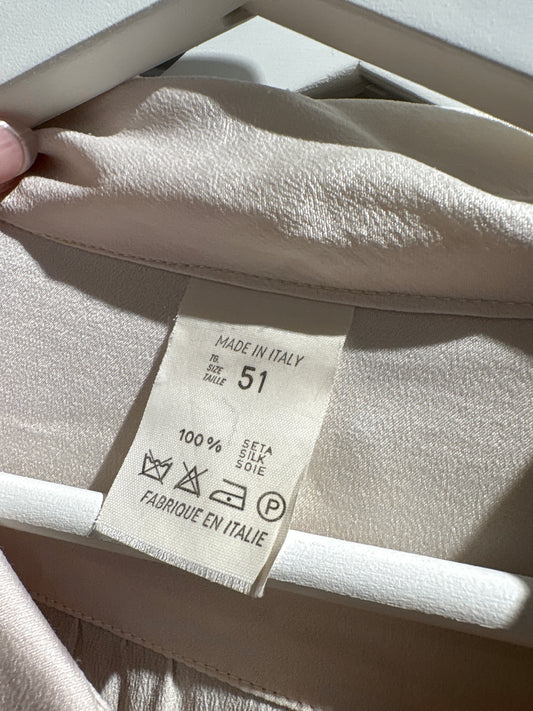 Cămașa din mătase naturală în culoare foarte pudrată cu eșarfă chic