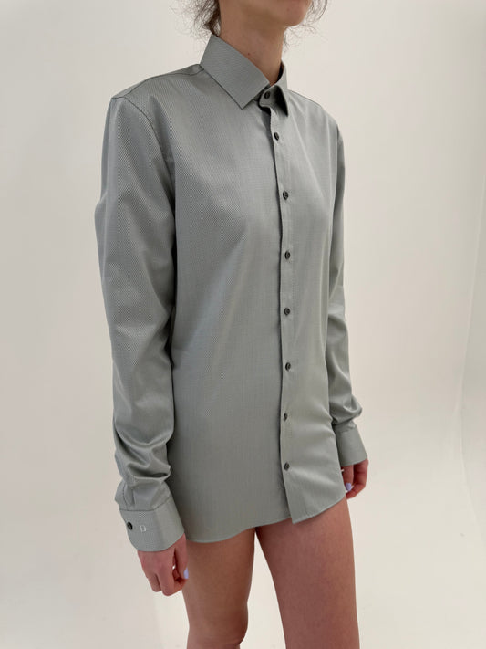 Cămașa Sage green din poplin de bumbac gros satinat texturat