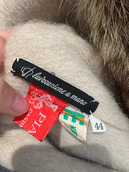 Palton ultra luxury Piacenza lucrat manual din cașmir și lana cu guler amplu de blană