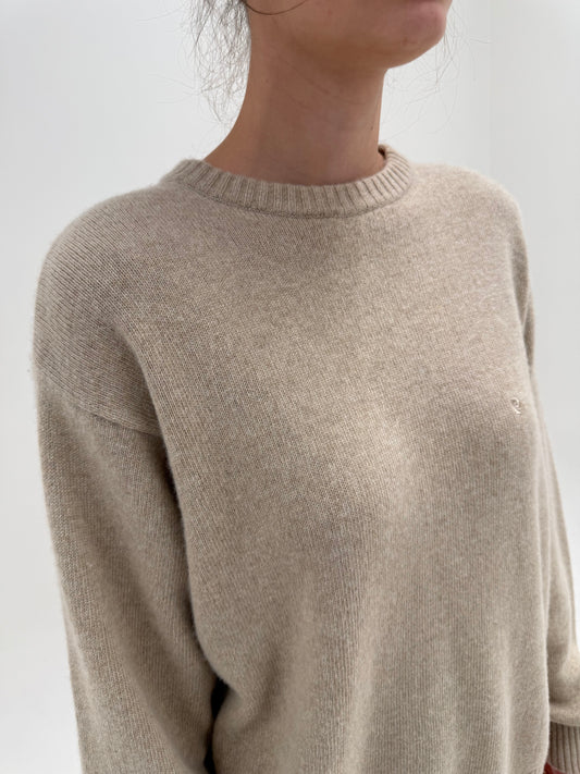 Oversized/ LStoc epuizatPulover nude de brand luxury Pierre Cardin din lana extrafina cu cașmir în croi lejer