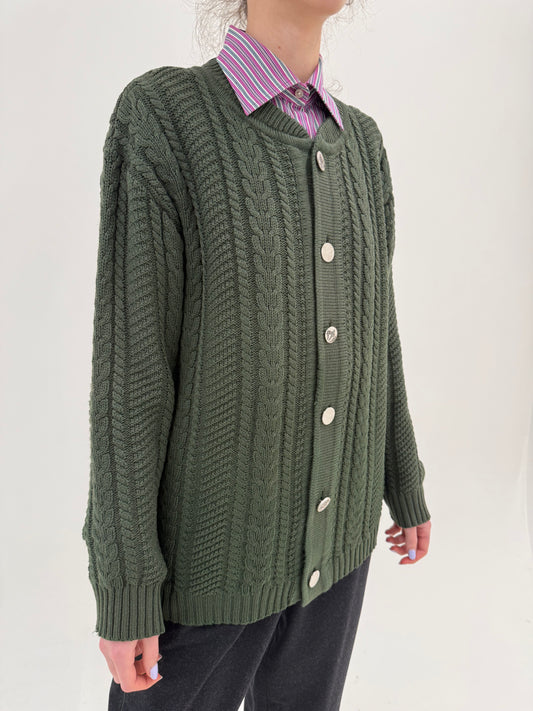 Oversized/ XLStoc epuizatCardigan vintage gros cu torsade și nasturi metalici argintii din lana extrafina