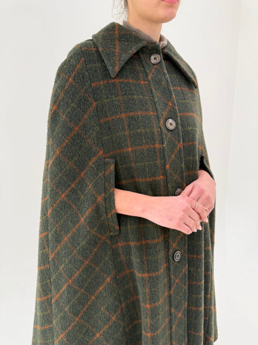 Capa vintage forest green în carouri fine camel din lana