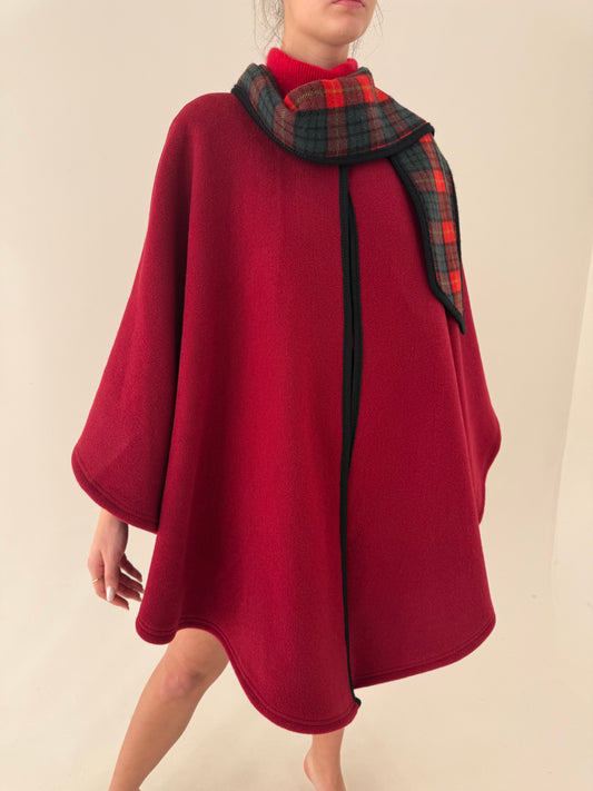 Capa din lana extrafina dark cherry red cu eșarfă proprie