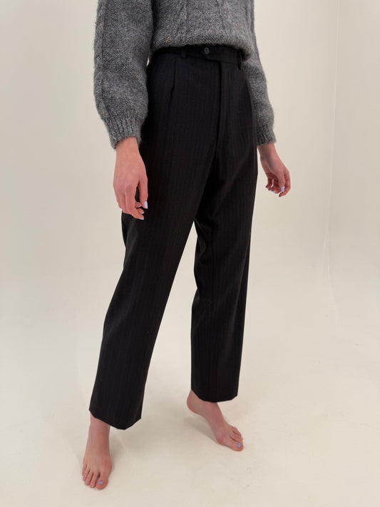 Pantaloni cu talie ultra înaltă și pense din lana extrafina certificată