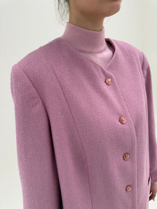 Sacou roz pudrat din boucle fin și subțire de lana extrafina în croi minimalist