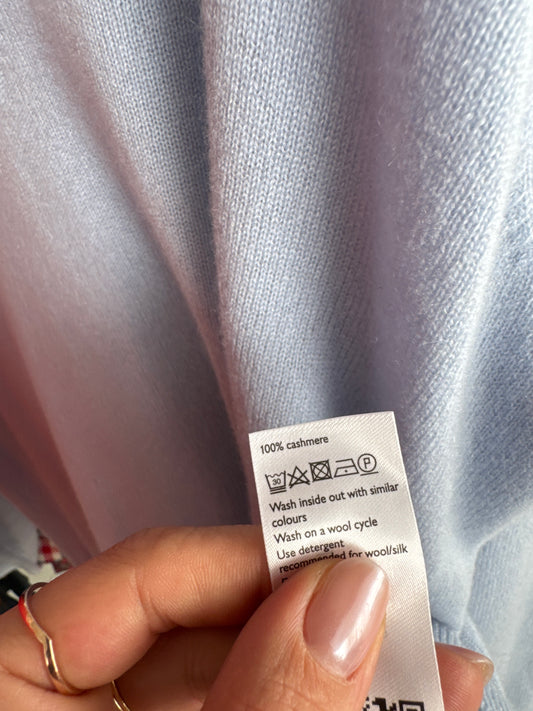 Puloveras baby blue petite din cașmir în anchior