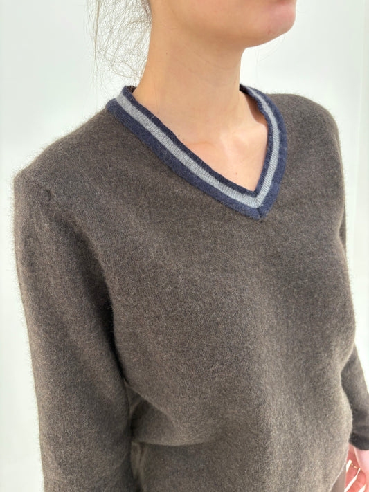 Pulover taupe din cașmir excepțional în croi lejer