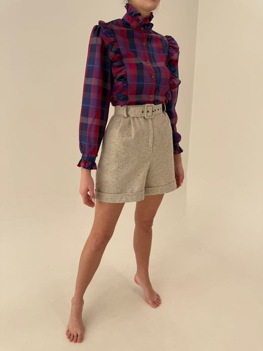 Pantaloni light nude din dota cu centura proprie și talie ultra înaltă