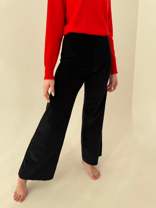 Pantaloni negri palazzo din catifea raiata subțire de bumbac confort
