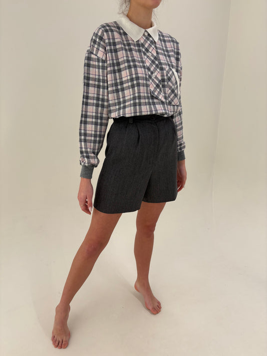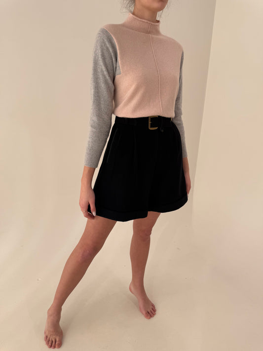 Pantaloni negri cu centură proprie și pense din lana și cașmir