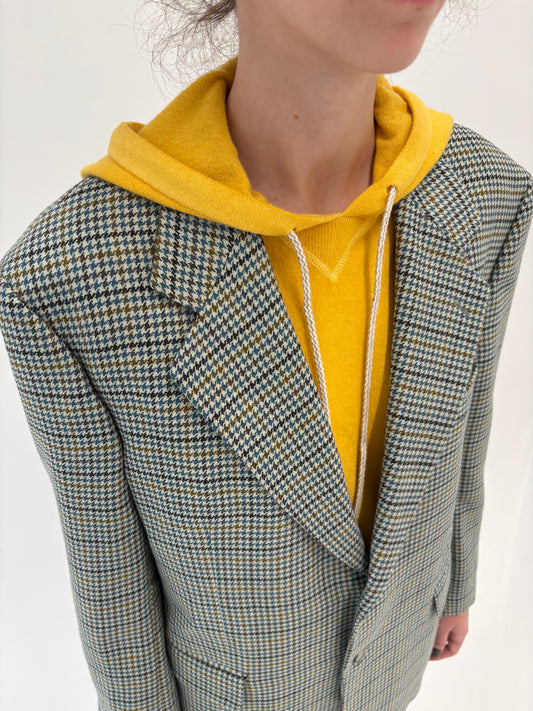 Sacou baby blue din lana și cașmir pied du coq în croi actual