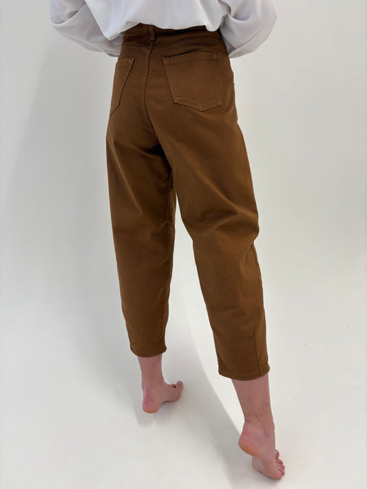 Jeans premium petite caramel brown cu talie ultra înaltă și pense