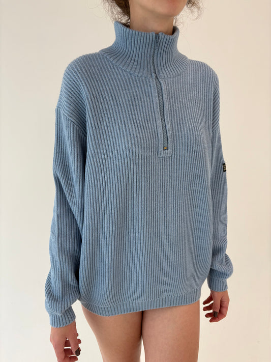 Maleta baby blue din lana merino extrafina de gramaj mare cu influențe sport