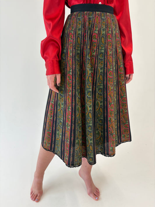 Fusta vintage în combinație sueoeba de culori și croi amplu cu talie ultra înaltă