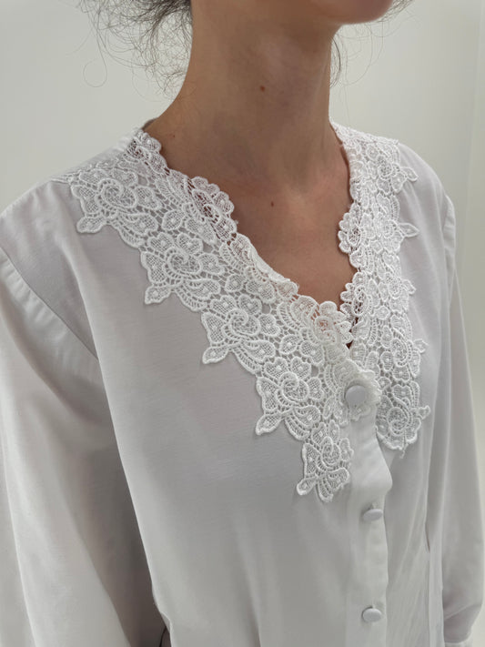 Cămașă elegantă în croi ușor cambrat cu aplicație din dantelă macrame