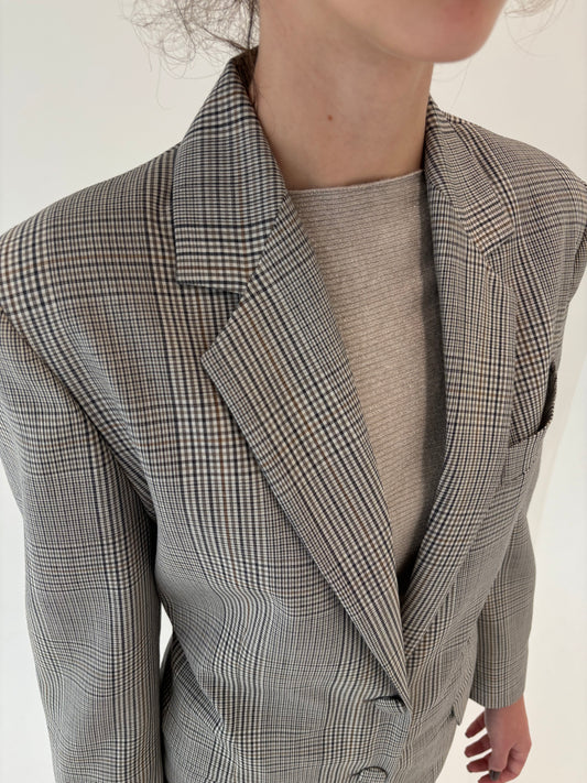 sacou ușor cambrat italian în carouri și culori neutre din lana extrafina