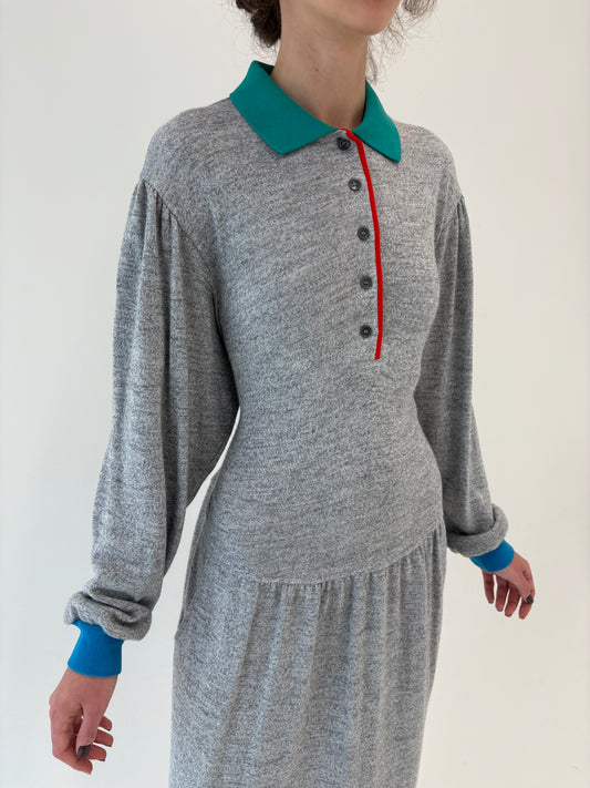 Rochie vintage maxi din jerse cu influențe casual cu buzunare