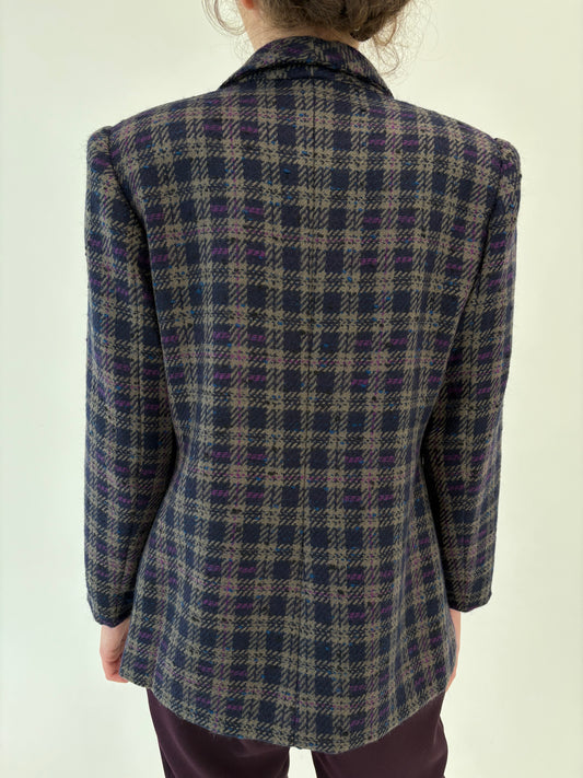 Sacou din tweed de lana plină în nuanțe de kaki, ivorie și mustariu