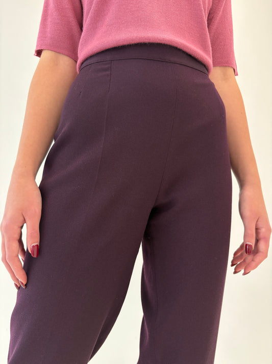Pantaloni aubergine italienești din twill excepțional de lana extrafina