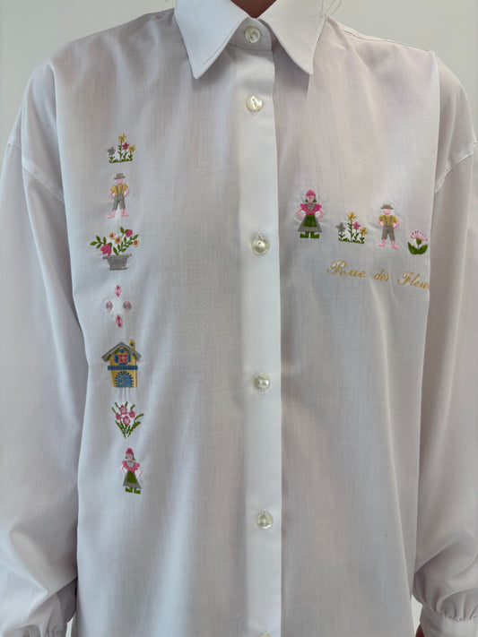 Cămașa vintage cu broderie în culori pudrate din poplin premium