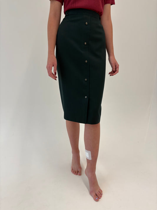 Fustă forest green cu talie ultra înaltă marcată elastică în croi conic