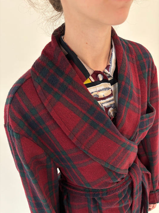 Sacou burgundy cu cordon din tweed extrafin plin de lana