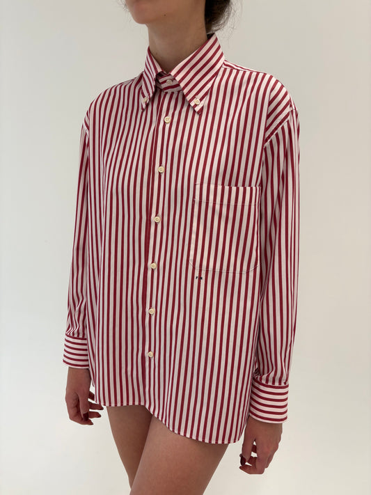 Cămașa burron down în dungi bordo din poplin premium plin de bumbac