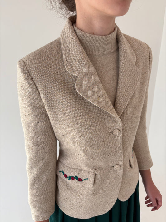 Sacou vintage petite cambrat light nude din lana excepțională cu broderie