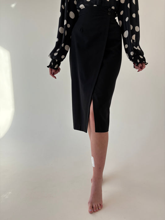 Fustă neagră petrecută ultra conică cu talie super înaltă marcată