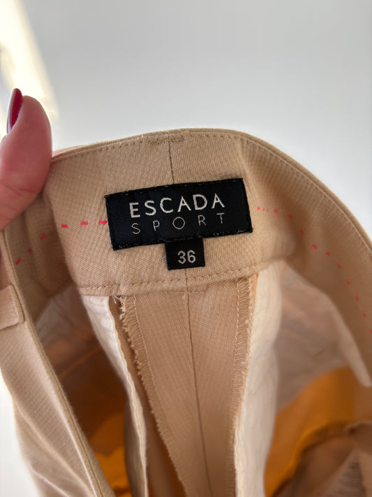 Pantaloni camel Escada modelatori foarte ușor satinați
