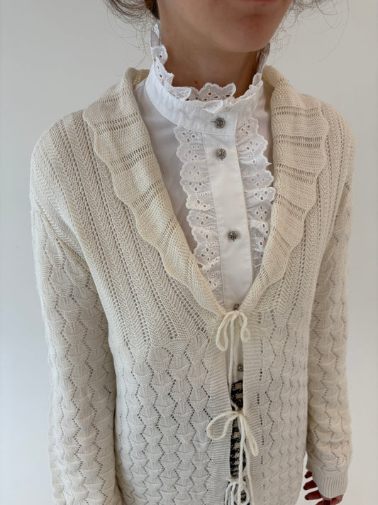 Cardigan vintage butter white lucrat manual dantelat din mix de lana extrafina