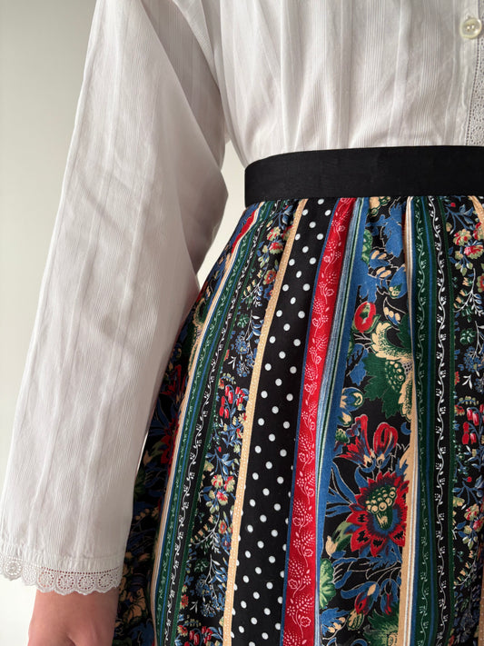 Fustă vintage amplă cu talie ultra înaltă și combinație superbă de printuri