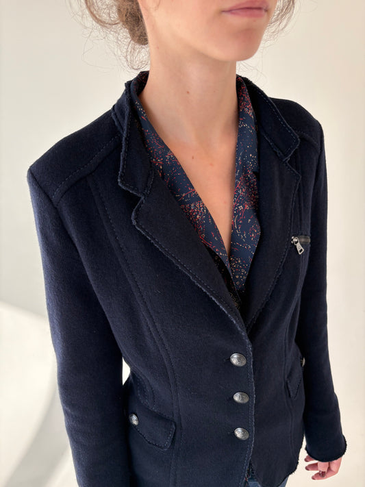 Sacou Navy ușor cambrat din boiled wool cu nasturi metalici argintii