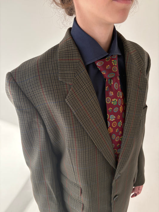 Sacou vintage din lana extrafina cu dungi fine burgundy pe kaki