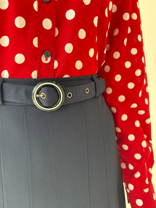 Fustă plisată Navy blue cu centura inclusă din stofă de lana extrafina