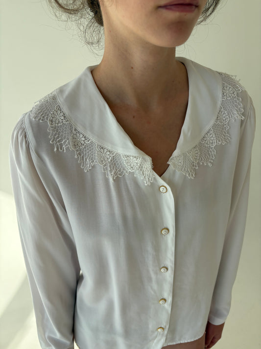 Oversized/ S/MStoc epuizatCămașa vintage cu guler rotunjit și aplicație de dantelă macrame superbă