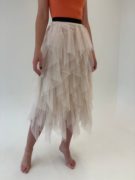 Fustă din tulle moale light nude cu talie ultra înaltă marcată elastică