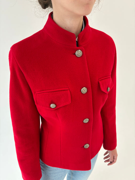 Jacheta cambrata cherry red din stofă plină de lana cu cașmir