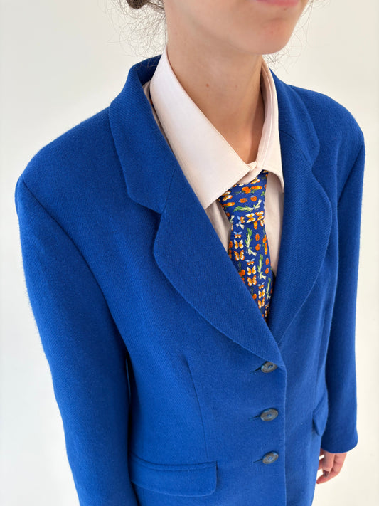 Sacou albastru regal din croi ușor cambrat din lana extrafina