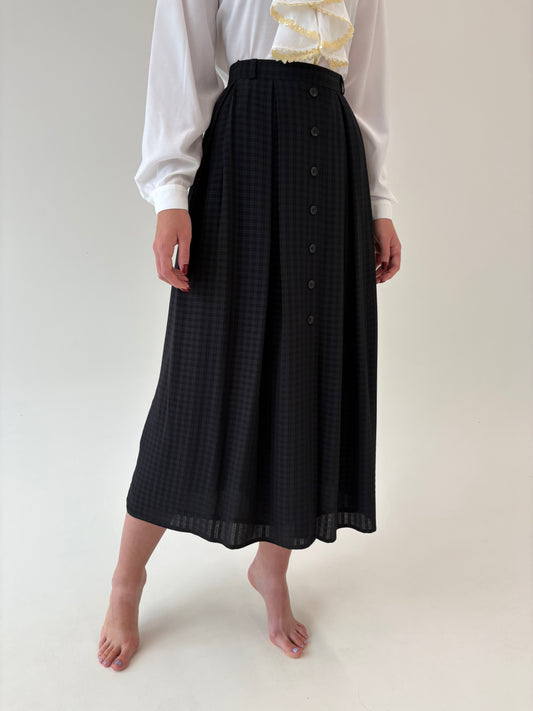 Fustă neagră extrem de amplă ușor satinata și texturată de la zi la seară