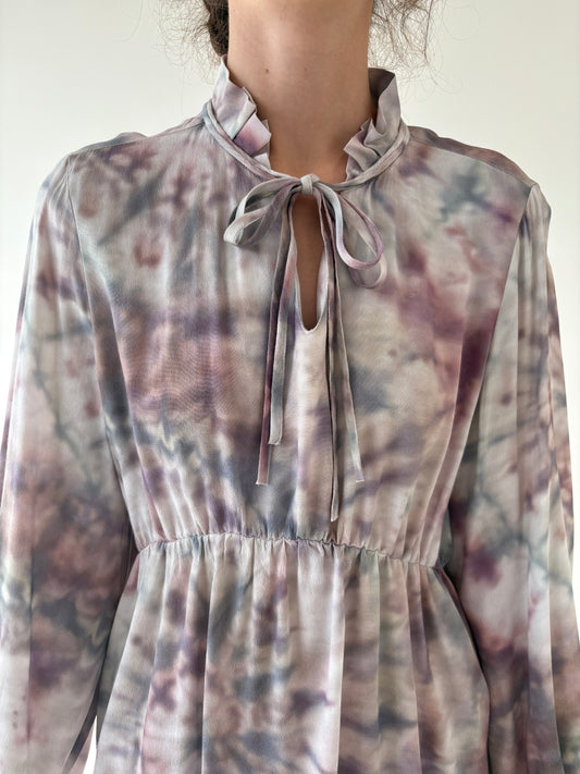 Bluză cu talie ultra înaltă marcată in culori pudrate și efect de peplum