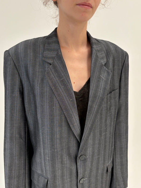 Oversized / M/LStoc epuizatSacou vintage din stofă din mix de mătase naturală cu dungi fine verticale