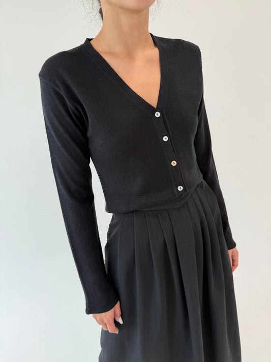 Cardigan negru ușor cambrat din mix de lana extrafina cu mâneci evazate