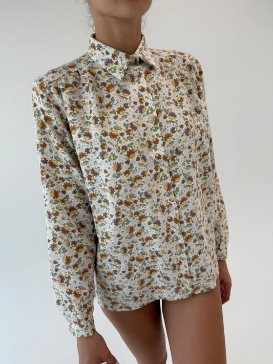 Cămașa vintage petite din poplin gros și moale de bumbac cu print floral delicat