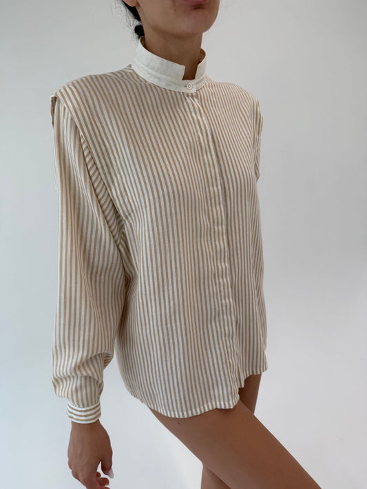 Cămașa vintage din poplin moale grosut cu dungi camel