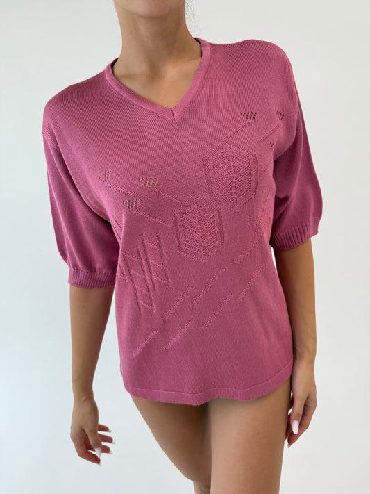 Top vintage old rose Pink din tricot din mix de lana extrafina