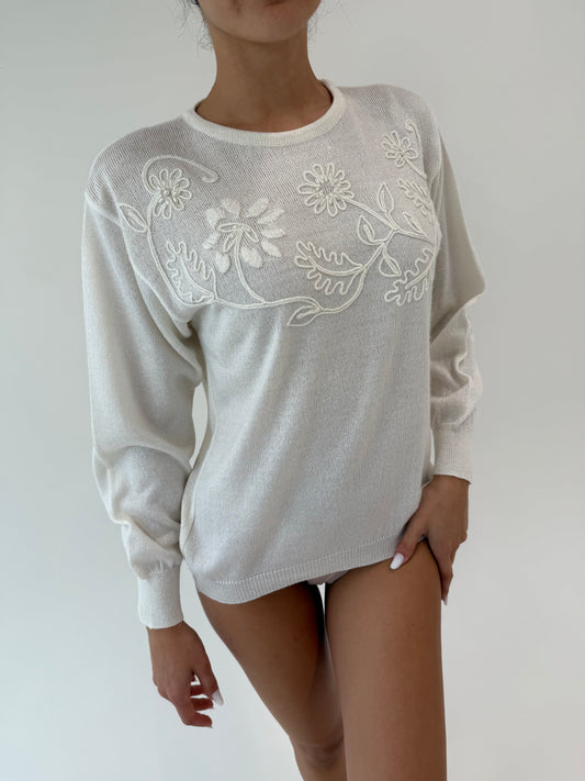 Puloveras cu aplicații manuale perlute și broderie 3D