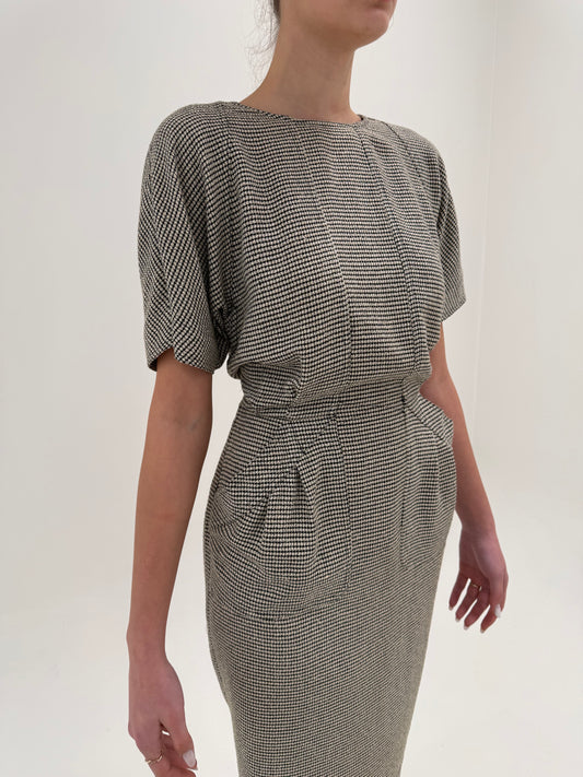 Rochie vintage în carouri din lana extrafina cu talie marcată elastică